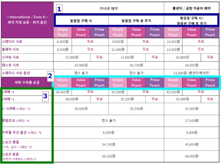기내 7kg까지는 무료인가요? 위탁수하물 인터넷 구매 시에 20kg에 6800원이라는 건가요? 피치항공의 위탁수하물 체계에 대해서 정확히 모르겠어요.ㅜ 자세히 알려주세요.