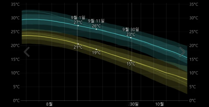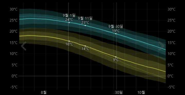 아래는 비교할 수 있도록 준비한 한국, 서울의 9월 평균 기온입니다.
