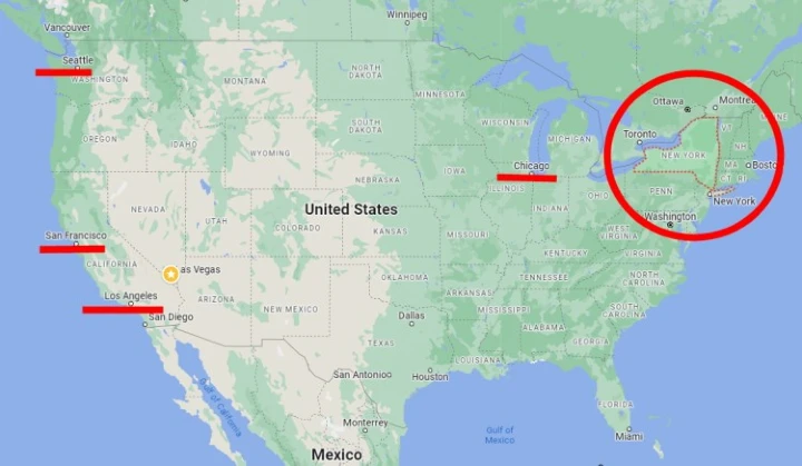 정확하게 설명하려면 미국 지도를 봐야 합니다. 미국 안에는 공식적으로는 2개의 뉴욕이 있고, 그냥 말하는 것으로는 3개의 뉴욕이 있습니다.